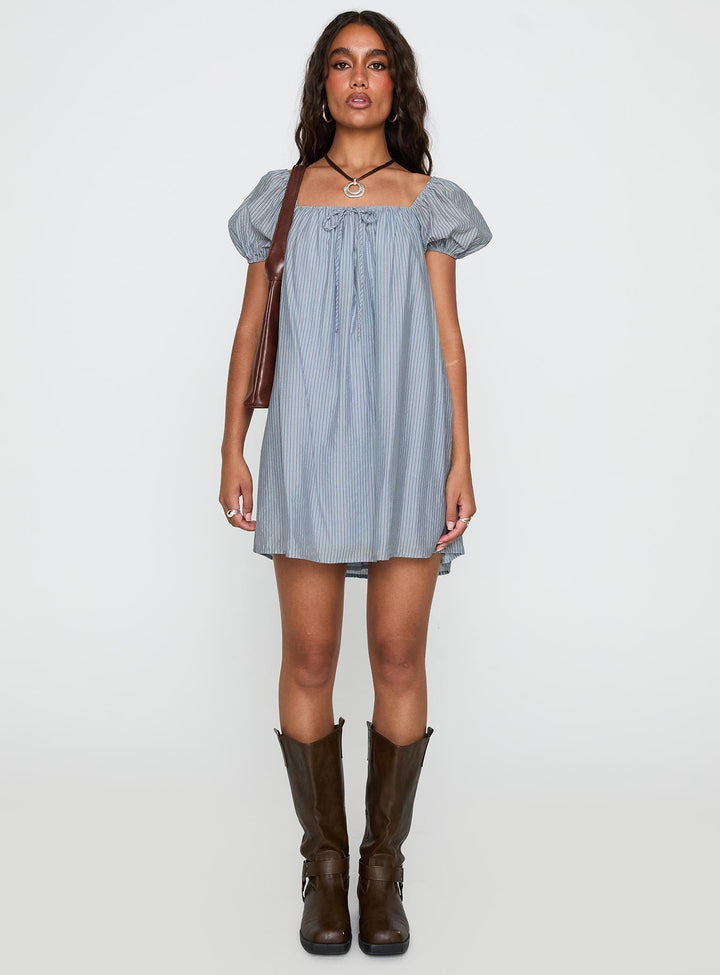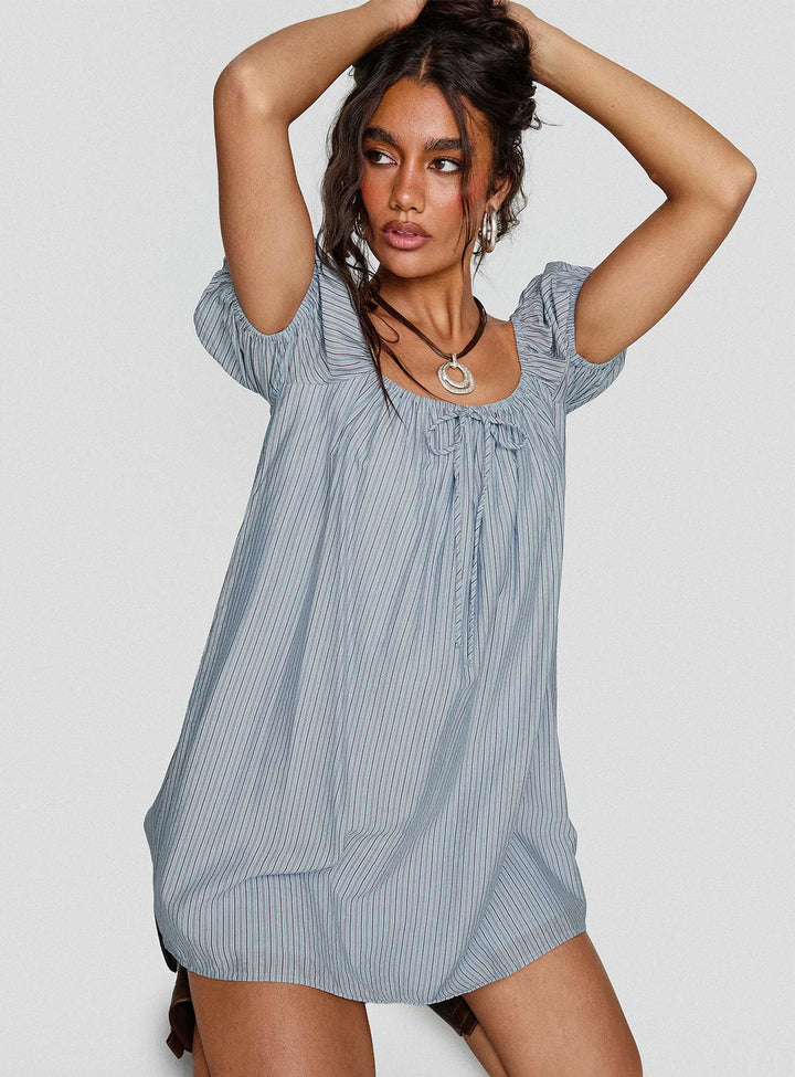 Wayfaire Smock Mini Elbise Mavi Çizgili