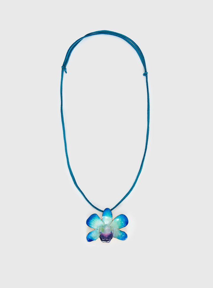 Yabani Gül Çiçek Kolye Mavi