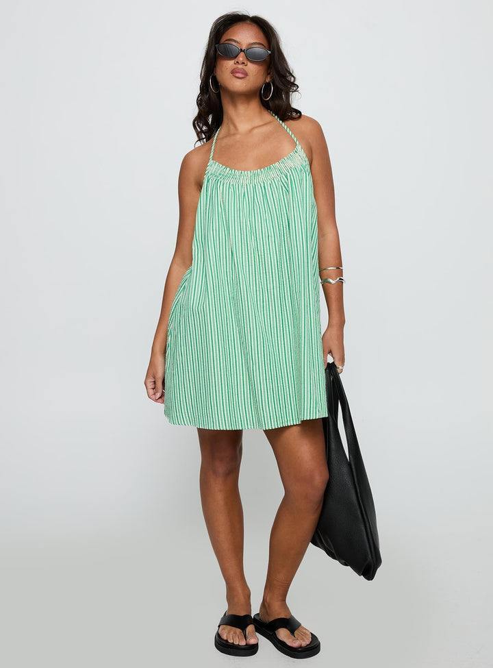 Winx Halter Mini Elbise Yeşil Çizgili