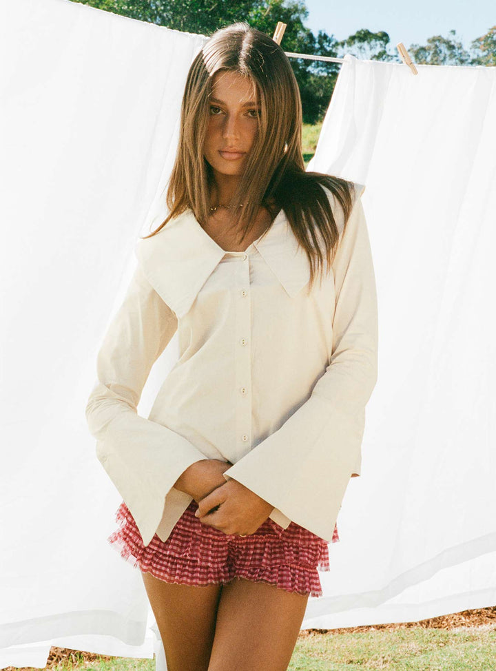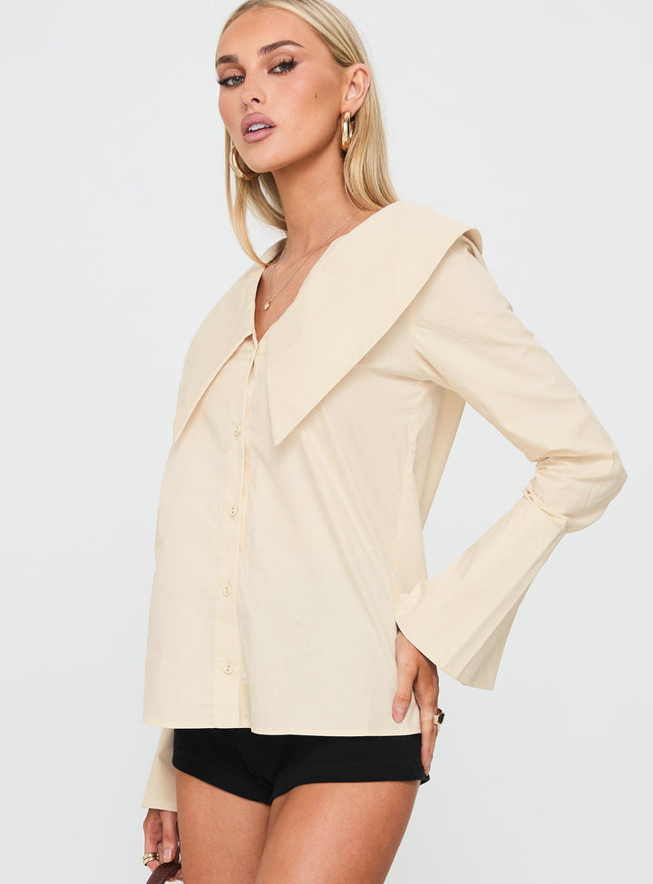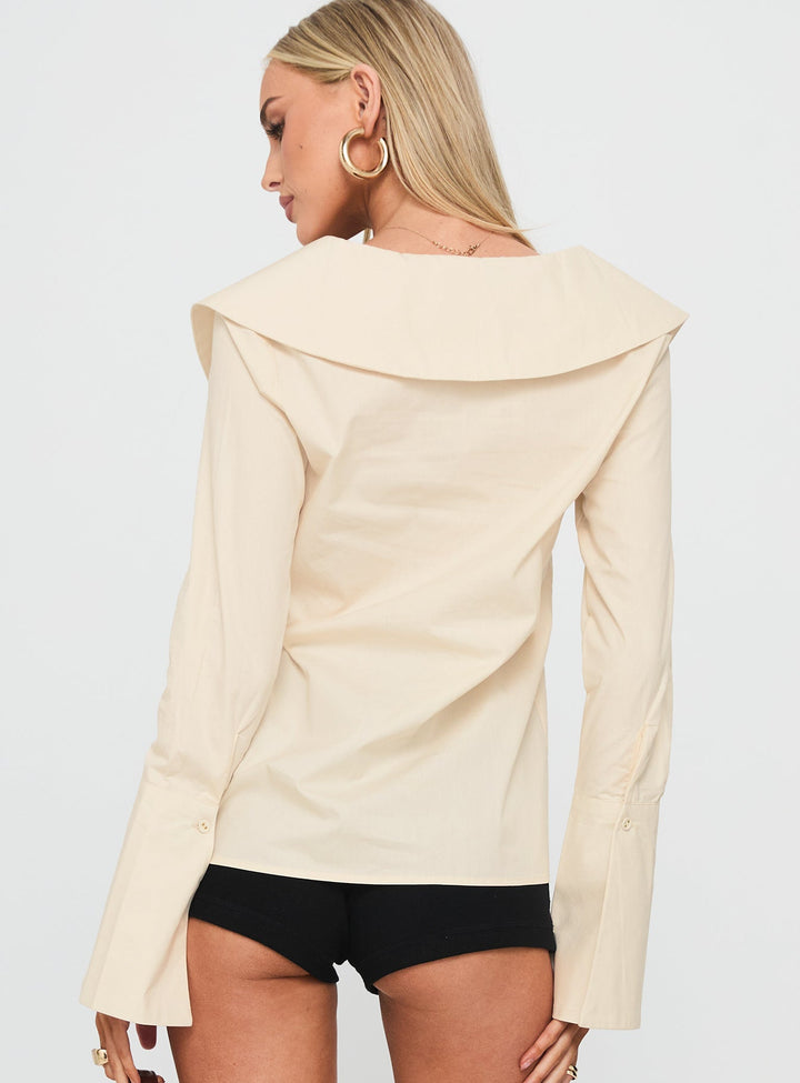 Zelina Büyük Yaka Uzun Kollu Üst Bej