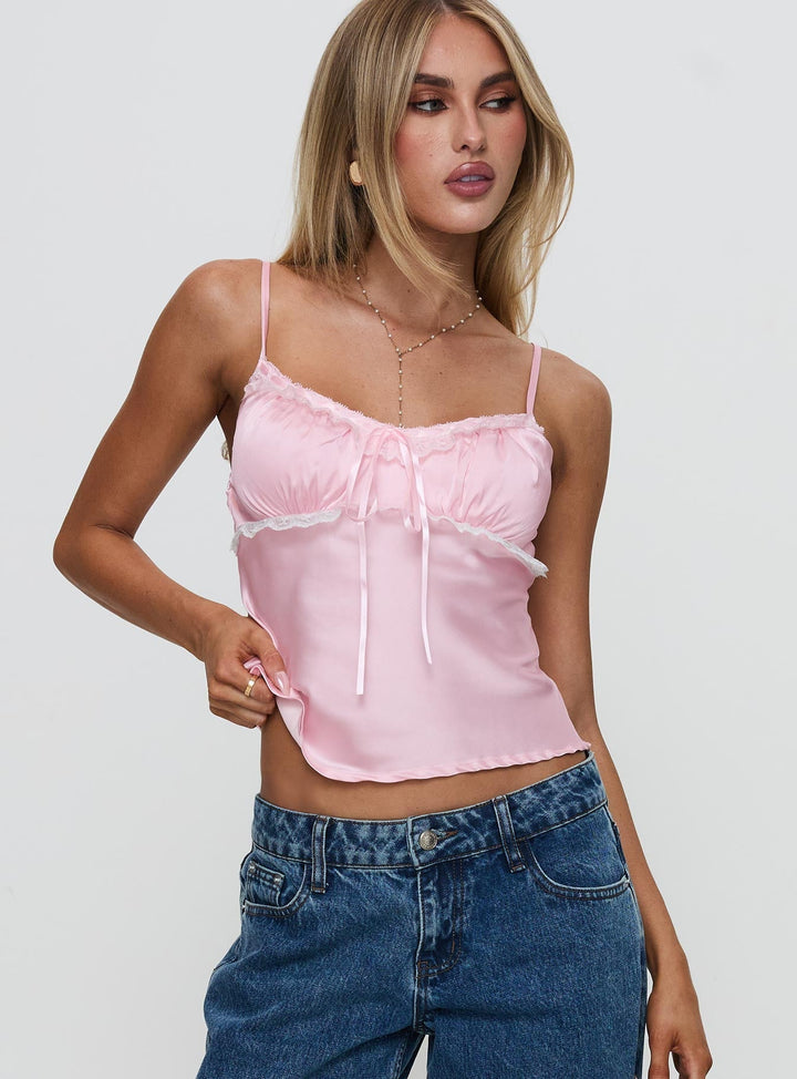 Zerah Dantel Süslemeli Saten Üst Pembe