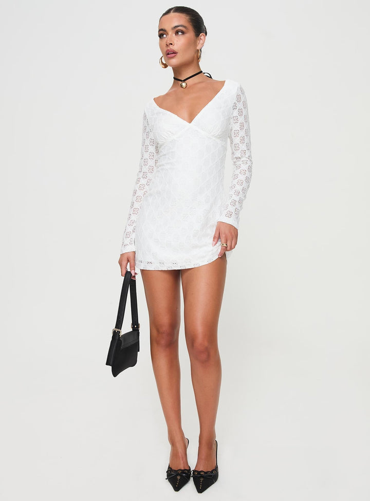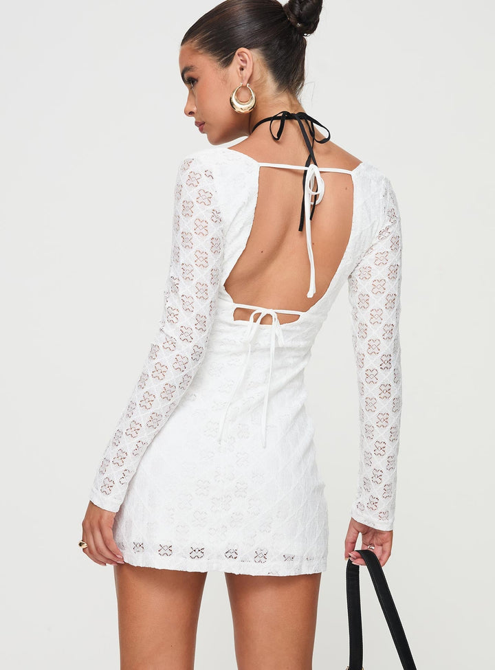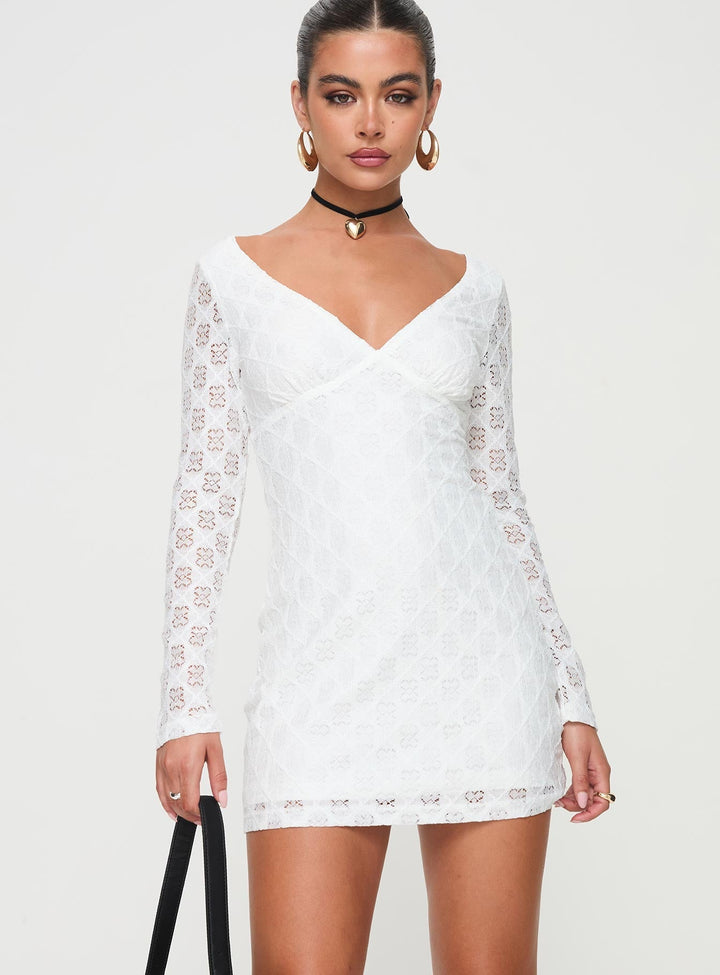 Zeus Uzun Kollu Mini Elbise Beyaz
