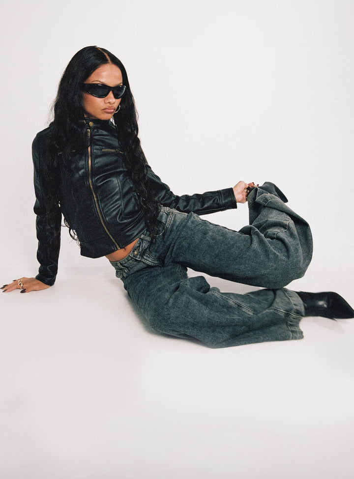 Ziggie Düşük Bel Bol Paça Kot Pantolon Antik Yıkama